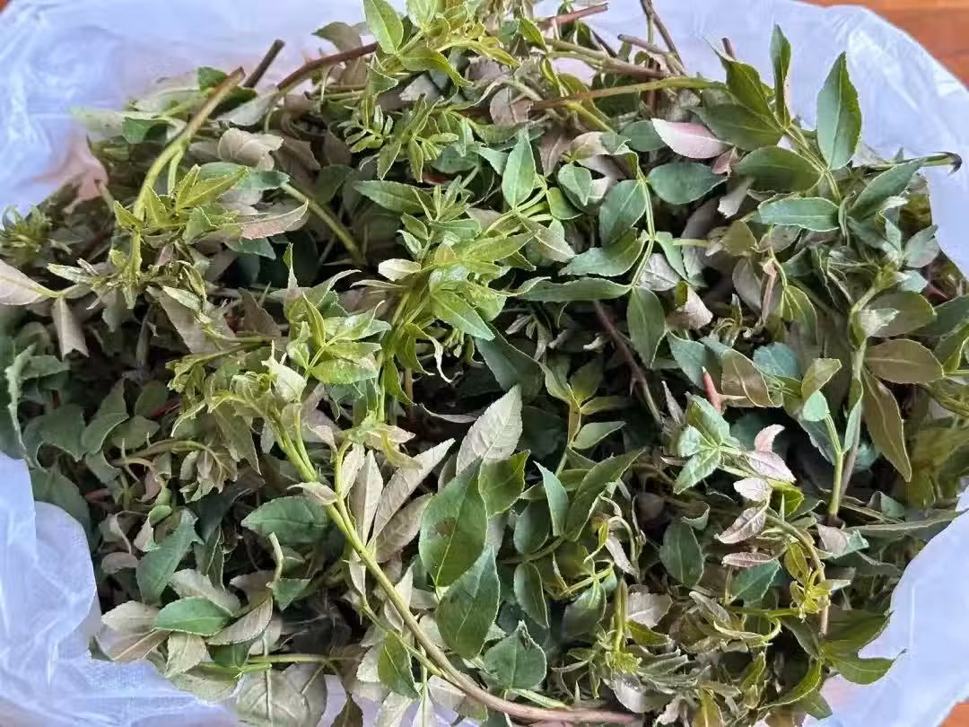 2、花椒葉選擇嫩芽的部分,清洗乾淨,焯水2分鐘左右,撈出來過涼水,擠干水分,切碎備用。