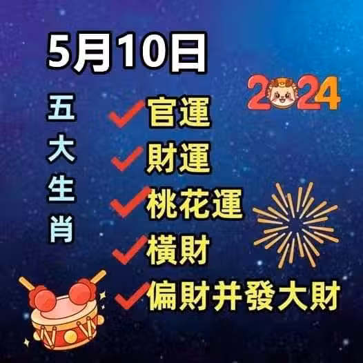 5月10日:官運 財運 桃花運 橫財偏財並發大財的五生肖