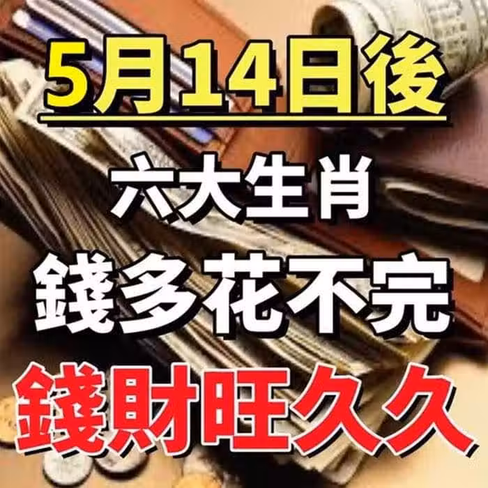 5月14日後錢多到花不完,錢財旺久久的生肖