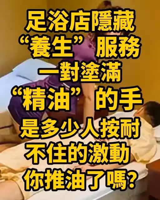 足浴店隱藏「養生」服務,一對塗滿「精油」的手 是多少人按耐不住的激動 你推油了嗎?