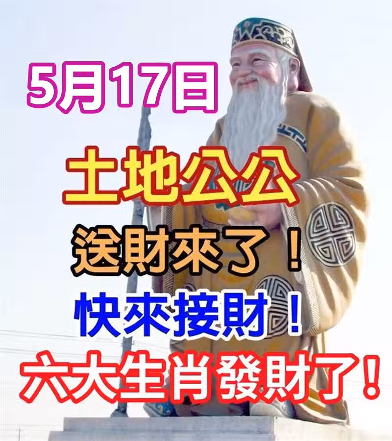 今天5月17日,土地公大開金庫大派財! 這幾個生肖快來接財!