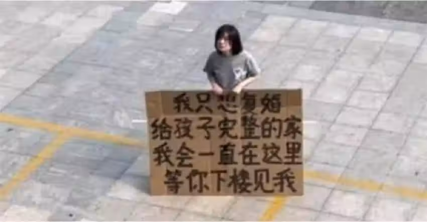 艷陽下跪6小時,單親媽舉牌求前夫復合畫面超催淚,沒想到卻爆出驚人內幕:她自作自受~