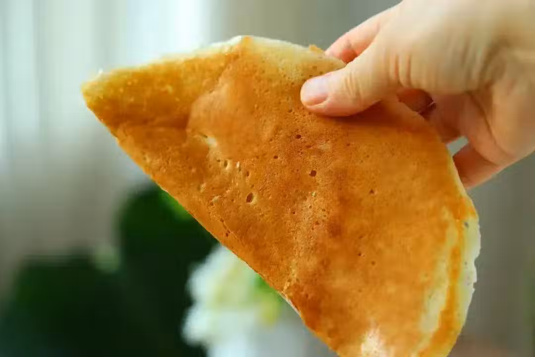8、表面是這樣的孔洞,非常漂亮!超級好吃!建議你們都要去試試。可以用大鍋來烙,速度更快!
