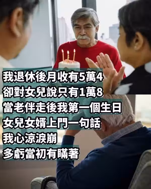 我退休後月收有5萬4卻對女兒說只有1萬8,當老伴走後我第一個生日,女兒女婿上門一句話,我心涼淚崩:多虧當初有瞞著~