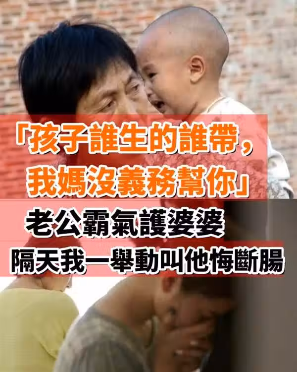 「孩子誰生的誰帶,我媽沒義務幫你」,老公霸氣護婆婆,隔天我一舉動叫他悔斷腸