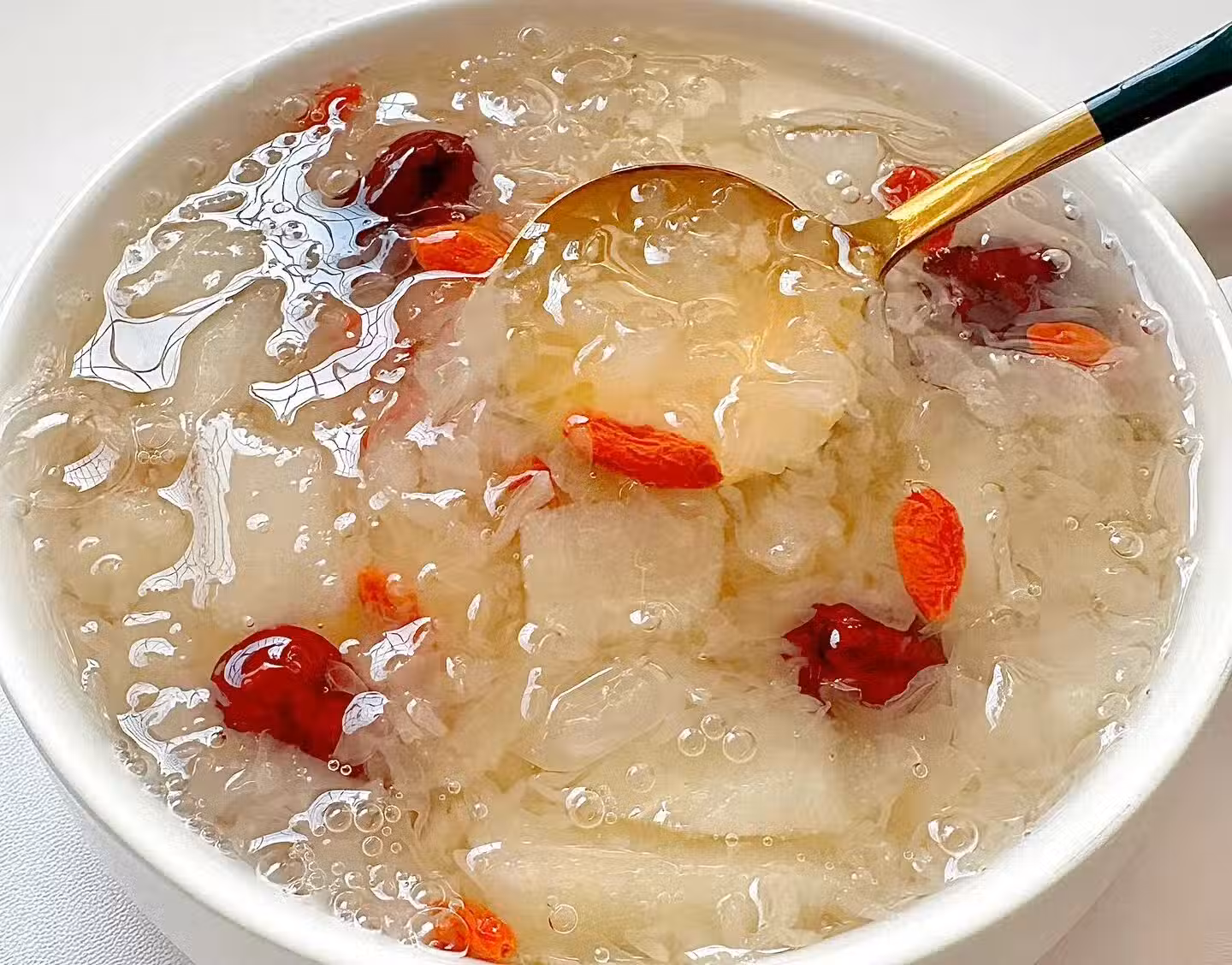 每一種都是滋潤的好東西。雪梨的甜潤,銀耳的膠質,紅棗的甘甜,枸杞的養生,冰糖的提味,每一種都是不可或缺。