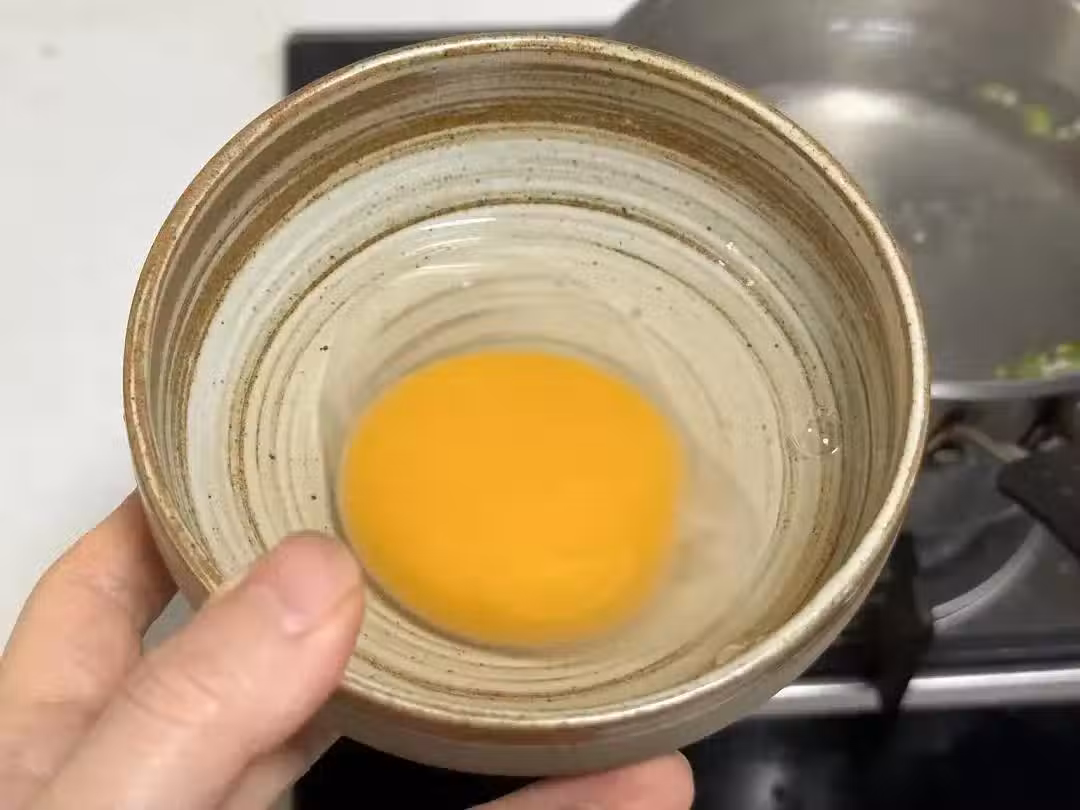5、關小火,再把蛋液慢慢淋入鍋中。