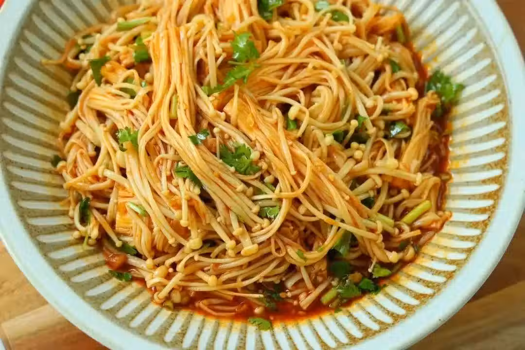 6、這樣做的金針菇是不會塞牙的,口感很嫩滑,搭配這樣一份涼拌汁,非常入味好吃。金針菇營養豐富,尤其是膳食纖維很高,同時也含有菌菇類中的麥角硫因,是非常好的食材,建議隔三差五吃一次這樣的菌菇,當然如果不喜歡金針菇的口感,換成其他菌菇也是可以的。