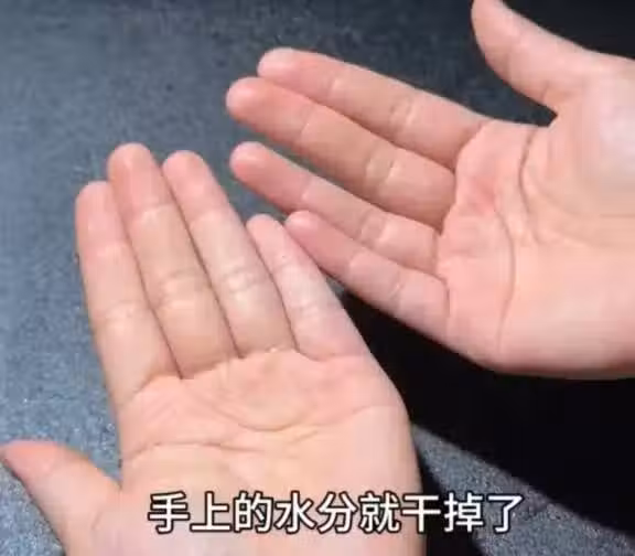 手洗完之後,我們可以用手交換,相互拍打,這樣可以讓我們的手更好的吸收,並且在拍打的過程中還可以得到一個緊致。當然如果時間不夠的話,我們也可以直接用干毛巾將手上面的水分擦乾,但像我平時在家不管是洗手還是洗臉,洗完之後從不用毛巾來擦水,都是用雙手將臉上或者是手上的水分拍干,這樣拍完之後非常的舒爽,約一分鐘的樣子,手上的水分就幹掉了,拍干後的手可以看到非常的潤,看起來是不是也是蹭亮蹭亮的。