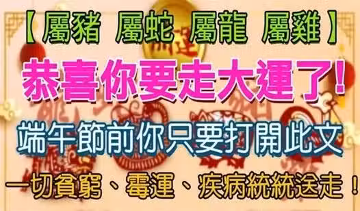 【屬豬 屬蛇 屬龍 屬雞】恭喜你要走大運了!端午節前你只要打開此文,一切貧窮、霉運、疾病統統送走哦!