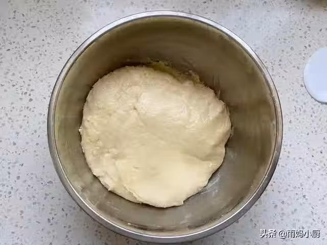 6、把麵糰切開,放在面板上,搓成長條形狀,用切面刀切成葡萄大小的小麵糰,注意大小均勻。