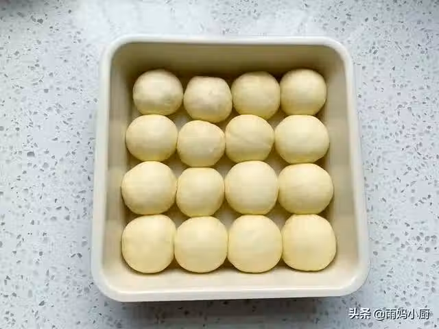 11、放入發酵箱裡(溫度34度,濕度80%),再次發酵原麵糰一倍大,表面刷全蛋液撒椰蓉,烤箱預熱上下管170度。