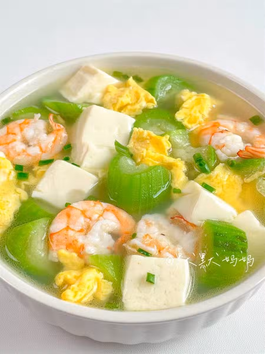 這個絲瓜蝦仁豆腐湯太好喝了,湯汁鮮美濃郁,絲瓜清香,做法超簡單