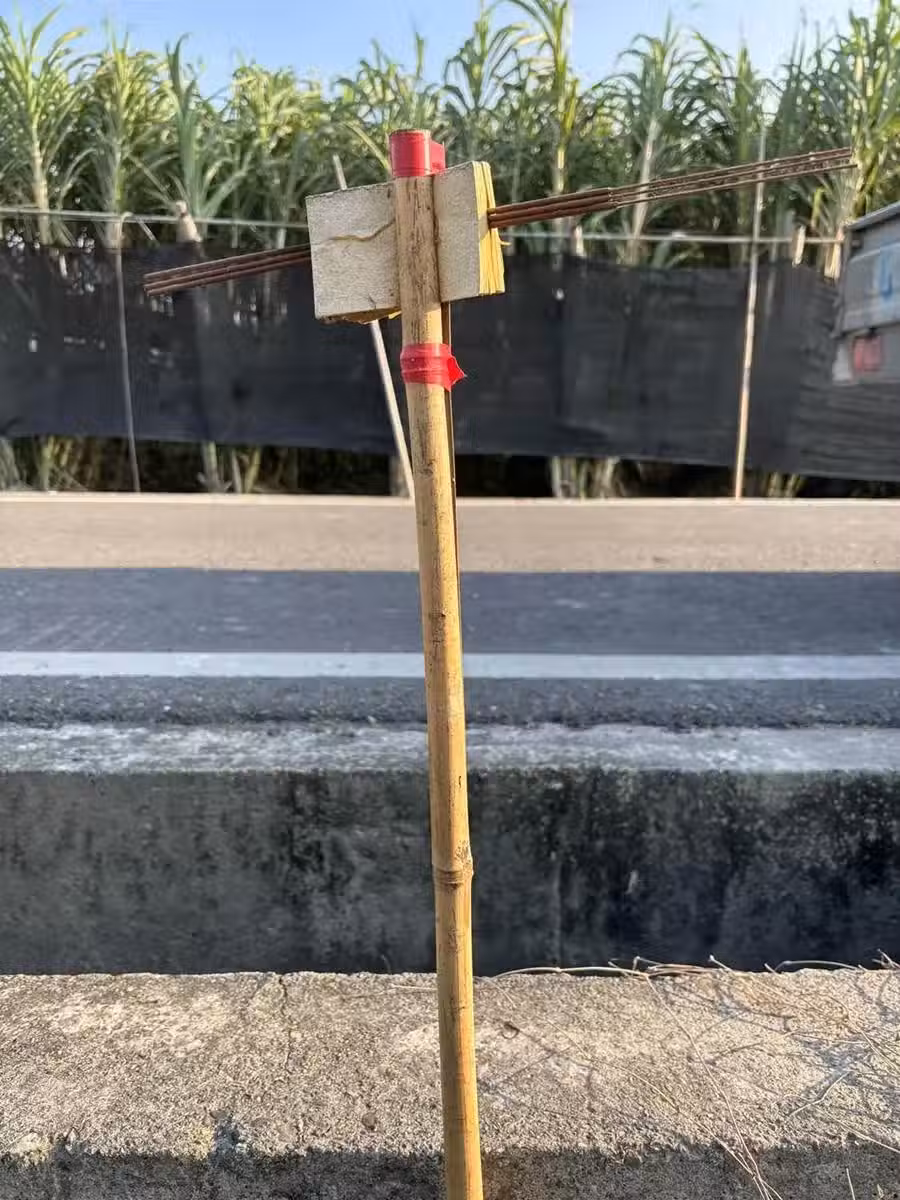 雖然時代越來越進步,但相對地,許多傳統民俗也漸漸在式微,不少老東西、古早作法可能越來越少見。就有一名網友路過一處農田時,發現田埂邊插著一根夾著金紙的竹竿,讓他不禁有感而發:「現在這個真的是鮮少看到了。」而這到底是什麼東西、有何用途呢?