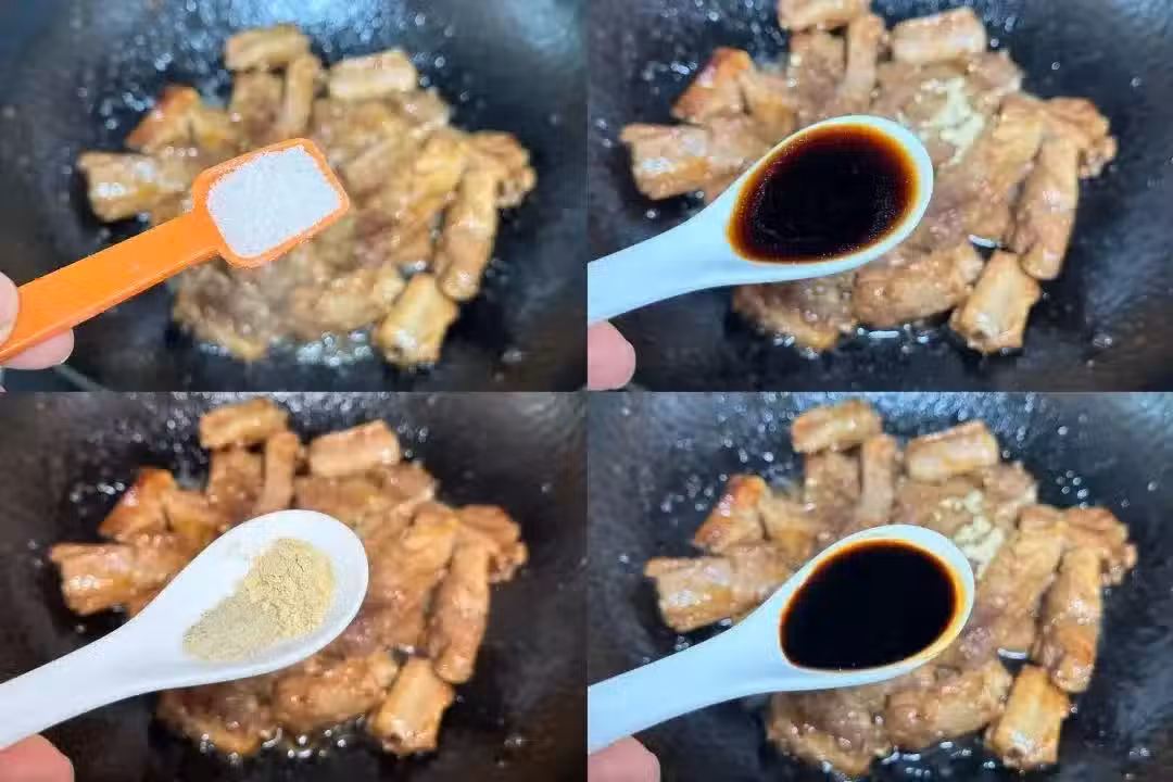 4、翻炒均勻之上色滿意;加入沒過排骨的開水。