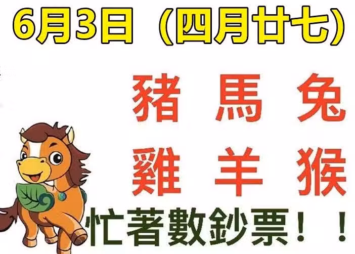 小運播報:2024年6月3日,星期一,農曆四月廿七。