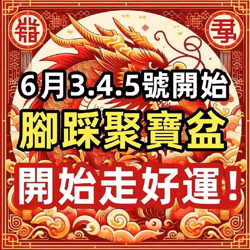 6月3.4.5號開始,腳踩聚寶盆的6生肖,開始走好運!