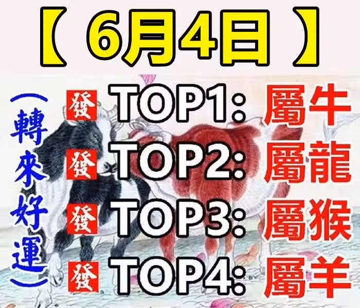 生肖(牛、龍、猴、羊)6月4日請為他們轉走