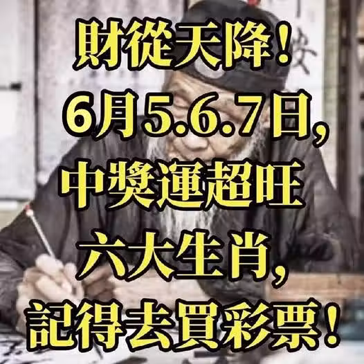 財從天降!6月5.6.7日中獎運超旺六大生肖,記得去買彩票!