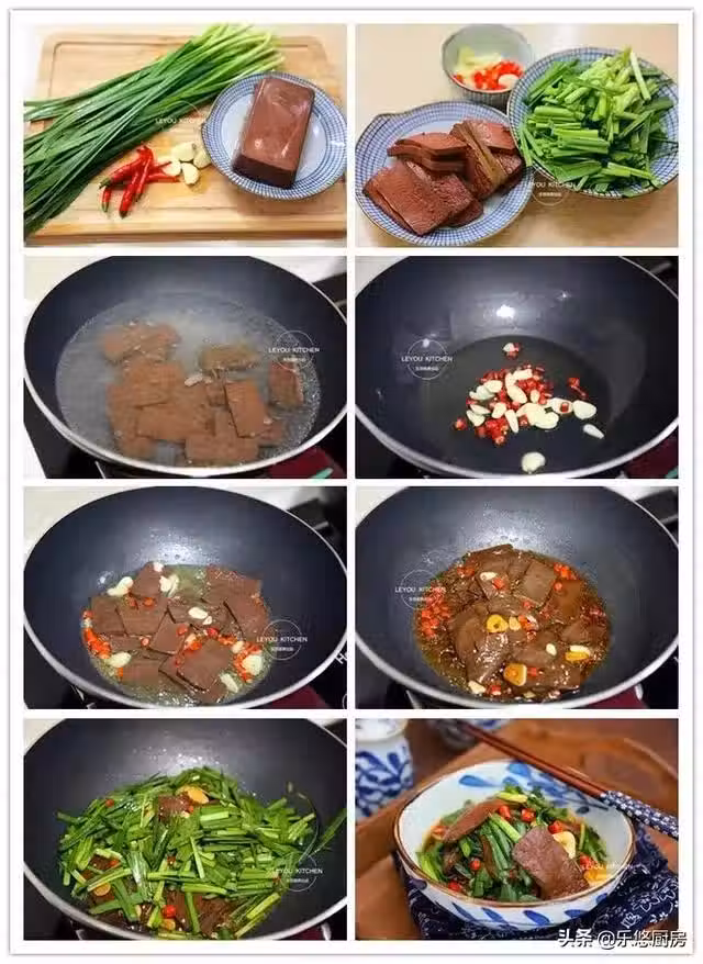 把豆腐用油簡單的煎一下,然後和韭菜一起炒,整個過程中,豆腐吸收了韭菜的香氣,每一塊都鮮香入味,特別下飯。