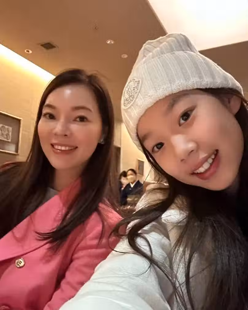 不得不說47歲的曾馨瑩真的很會保養,快50歲的人了臉上仍然一點皺紋也沒有,皮膚白里透紅,宛如少女般凍齡。大女兒妞妞則戴著一頂帽子,長發披肩,唇紅齒白,打扮青春靚麗,比媽媽多了一絲靈氣。從妞妞的五官來看,她更多遺傳了媽媽的基因,母女倆的長相好似復制粘貼一般。