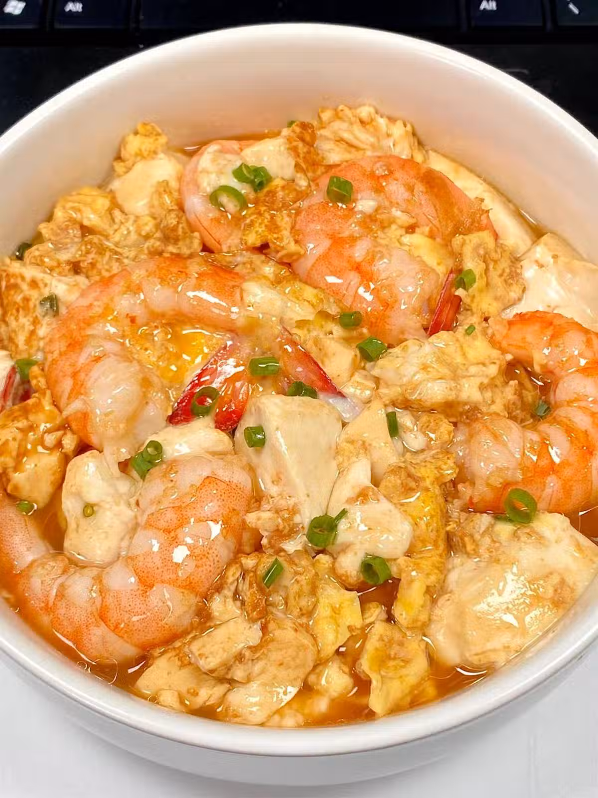 雞蛋蝦仁抱豆腐巨好吃,有幸在親戚家吃過一回,被驚艷到了!!