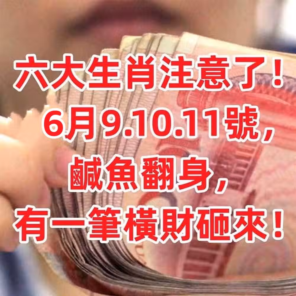 6月9.10.11號,鹹魚翻身,有一筆橫財砸來的生肖!