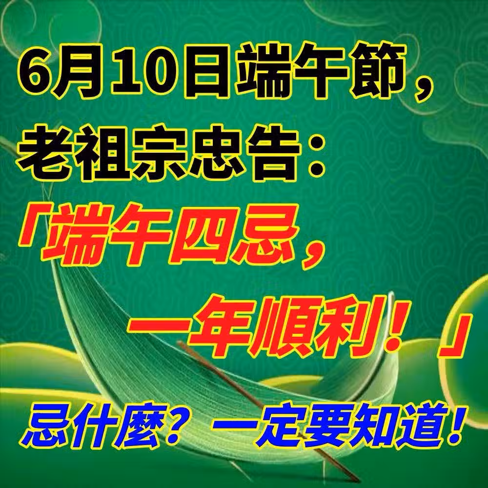 6月10日端午節,老祖宗忠告:「端午四忌,一年順利」,忌什麼?