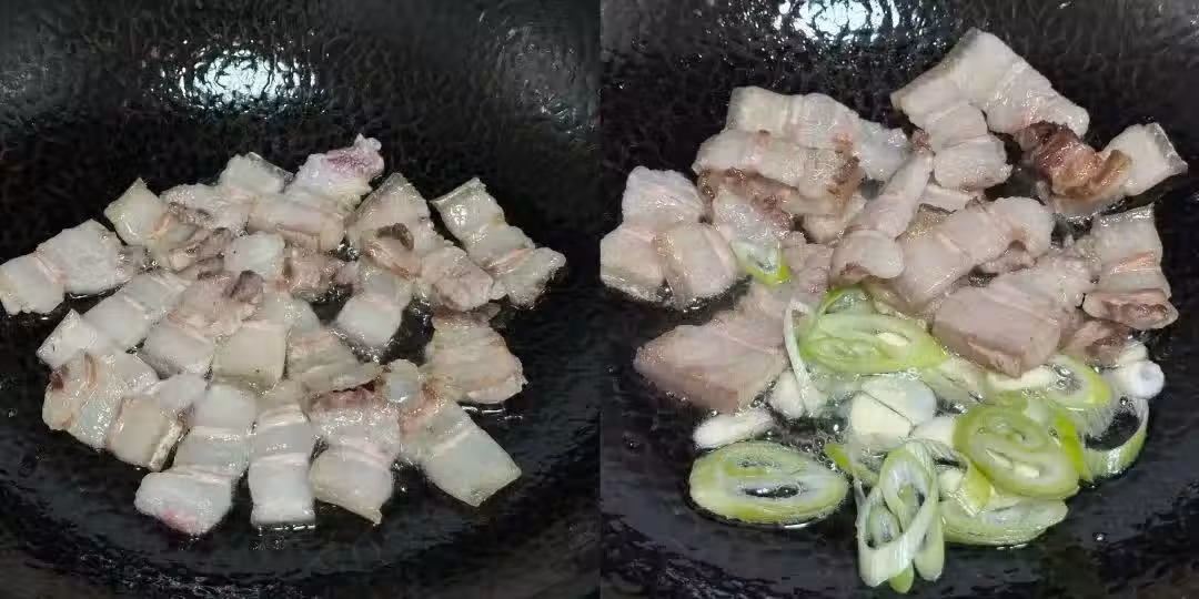 4、這個時候就可以調味了,先給肉入個底味:白鬍椒粉+姜粉1小勺 生抽2勺 老抽1勺 鹽少量翻炒均勻;下入所有的配菜翻炒均勻;
