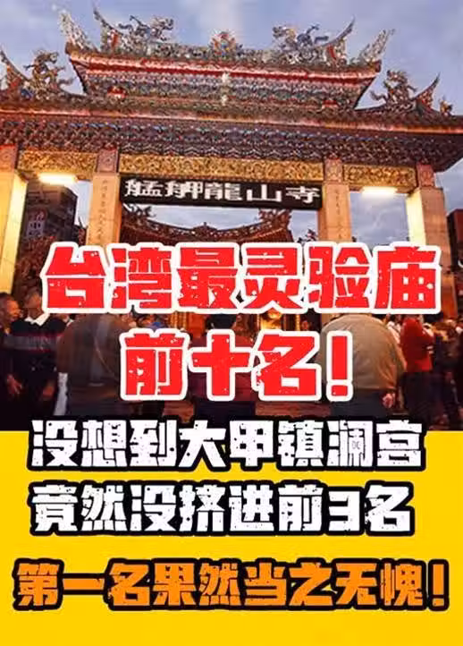 台灣最靈驗的廟前十名!沒想到大甲鎮瀾宮竟然沒擠進前3名,第一名果然當之無愧~