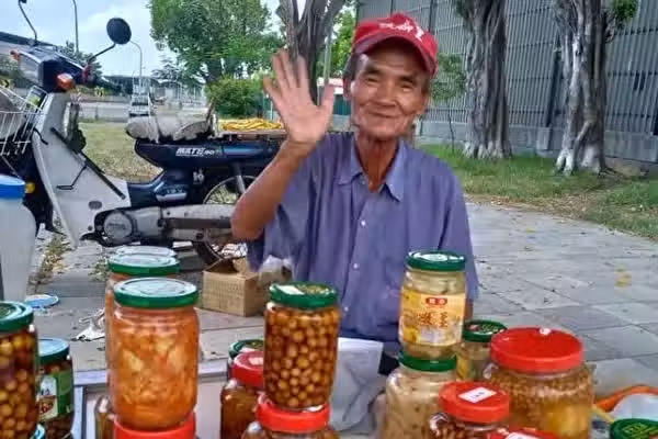 在台灣的港都高雄有一位人稱「醬菜阿公」的73歲蘇阿公,他一人獨自扛起整家的重擔,不管颳風下雨、烈日高溫,每天堅持在街頭叫賣,因為他不這樣做,「家人們的下一餐可能就沒了」,報導一出,讓網友們感動不已,紛紛呼籲要用「新台幣下架醬菜」。
