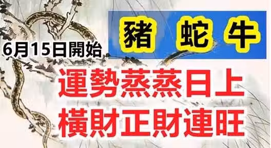 6月15日開始運勢蒸蒸日上,鴻運當頭,三生肖橫財正財連連旺