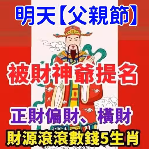 明天【父親節】被財神爺提名,正財偏財、橫財,財源滾滾數錢