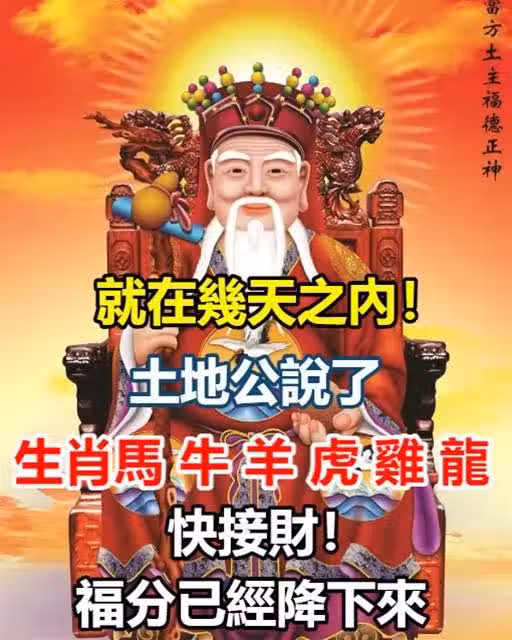 就在幾天之內!土地公說了「生肖馬牛羊虎雞龍」快接財 福分已經降下來