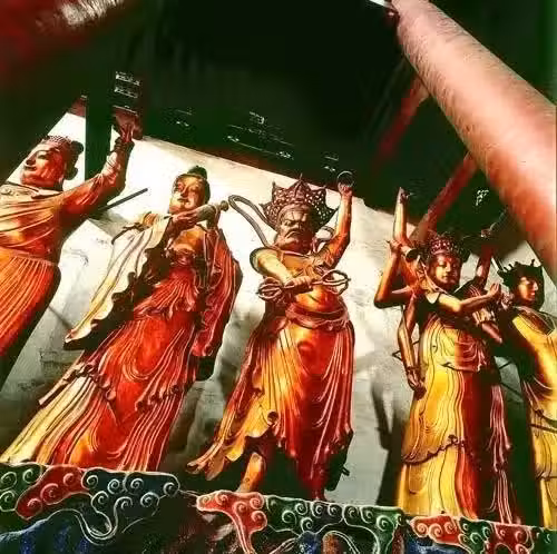 伽藍本是印度佛教中的護法神,慢慢傳到中國以後就具有了中國的特色。伽藍神,就狹義而言,指伽藍土地的守護神;廣義而言,泛指所有擁護佛法的諸天善神。依《七佛八菩薩大陀羅尼神咒經》卷四所述,護僧伽藍神有十八人,一名美音、二名梵音、三名天鼓、四名巧妙、五名嘆妙、六名廣妙、七名雷音、八名師子音、九名妙美、十名梵響、十一名人音、十二名佛奴、十三名嘆德、十四名廣目、十五名妙眼、十六名徹聽、十七名徹視、十八名遍觀。此謂之為『十八伽藍神』。