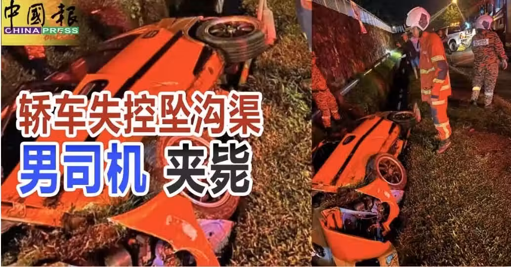 他說,消拯員抵達現場發現,一輛第二國產靈鹿轎車,相信在行駛途中失控後沖入路旁水溝,導致一對男女受困車內。