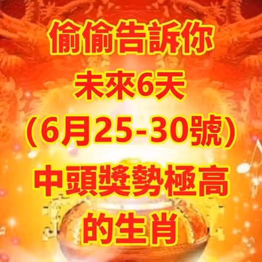 偷偷告訴你:未來6天(6月25-30號)中頭獎勢極高的生肖