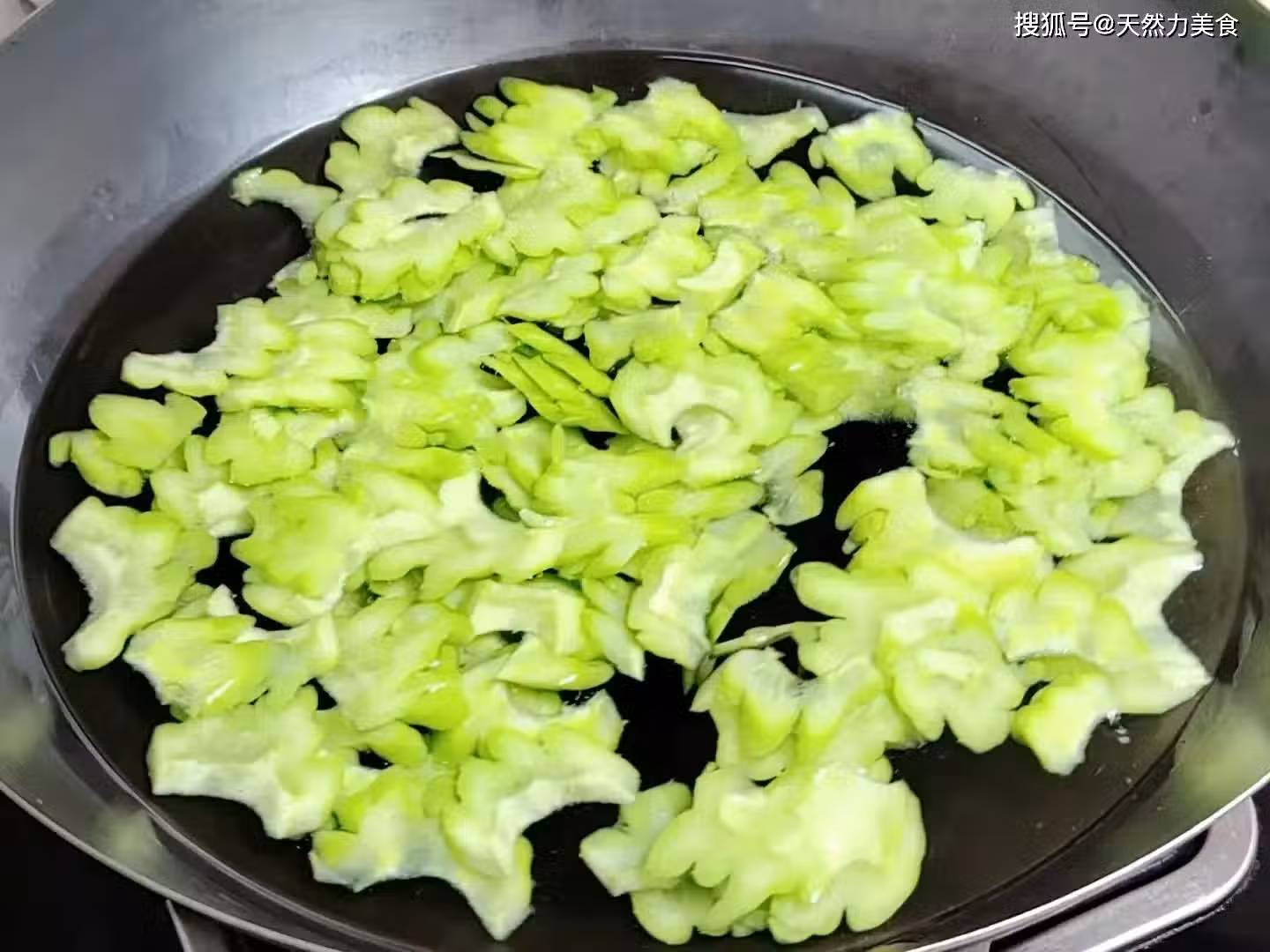 5、苦瓜撈出後要馬上放進冰水中過涼,沒有冰水的就直接用清水沖涼,這樣做的目的就是要讓苦瓜馬上把溫度降下來,也就不會因為餘溫的加持而變黃,可以讓苦瓜爆炒翠綠的顏色。
