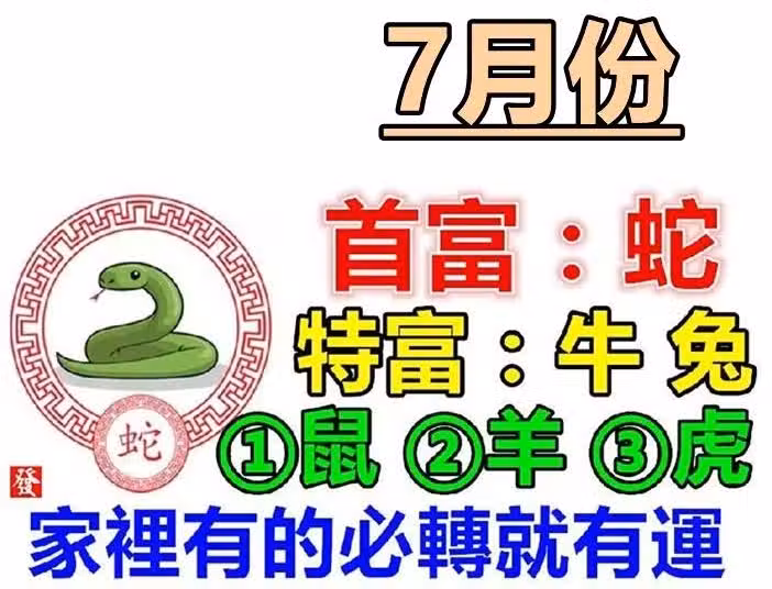 7月(蛇牛兔鼠羊虎)家裡有的就有運