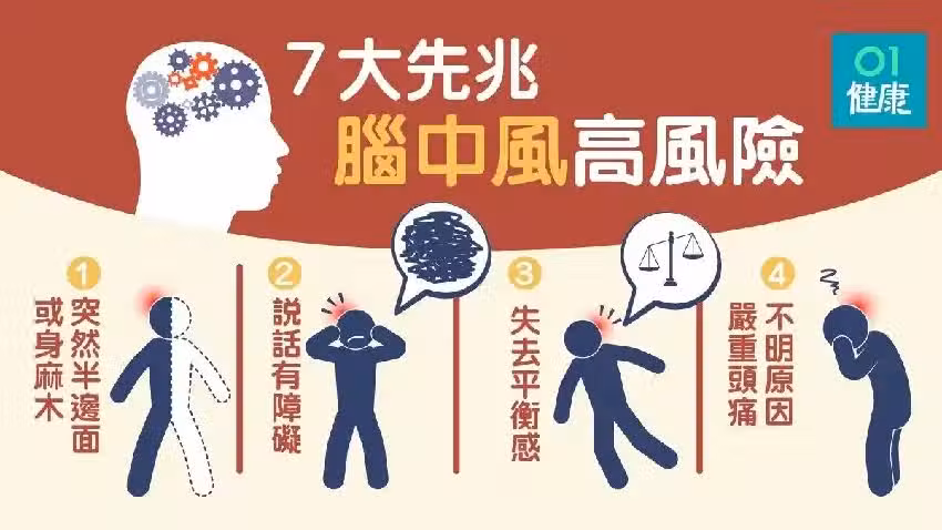 其實, 中風在發作前往往有些蛛絲馬跡,若能及時發現,分秒必爭地搶救,患者中風的死亡率可降低在 10% 以內。
