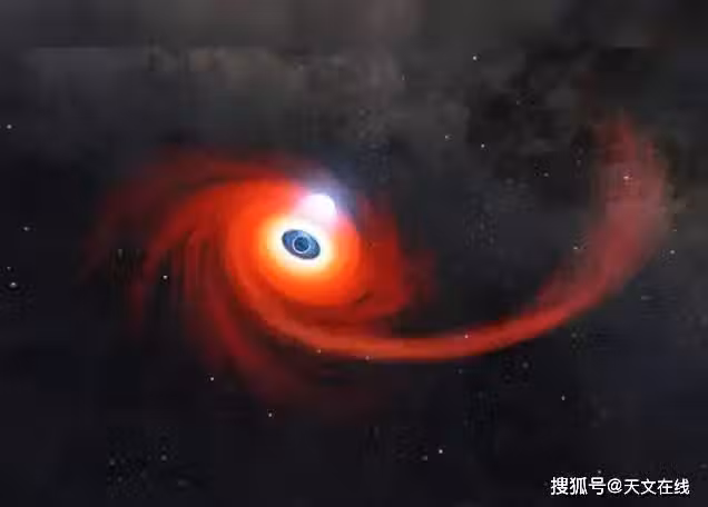 當恆星過於接近黑洞時,黑洞的引力會在恆星中產生巨大的潮汐力,以至於恆星體被垂直拉伸,而水平方向則被擠壓,這個過程被稱為 "穗狀化"。來自恆星的物質在黑洞周圍形成一個扁平的圓盤,其中一些物質吸積到黑洞中心,而其他恆星物質則被強大的磁場引至兩極,並以接近光速的噴流形式噴射出來。