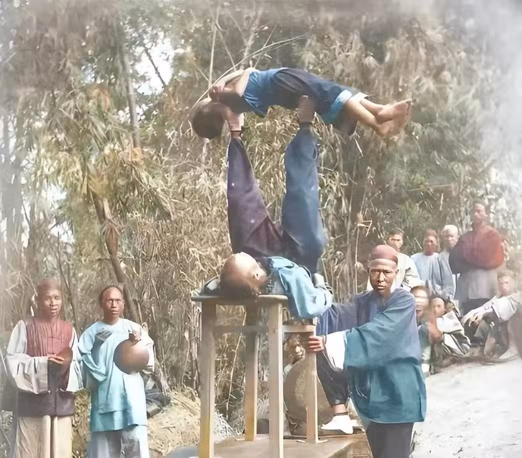 這就是街頭藝人的真實寫照,幾個人合作挑戰高難度動作,博得周圍人一聲聲喝彩。