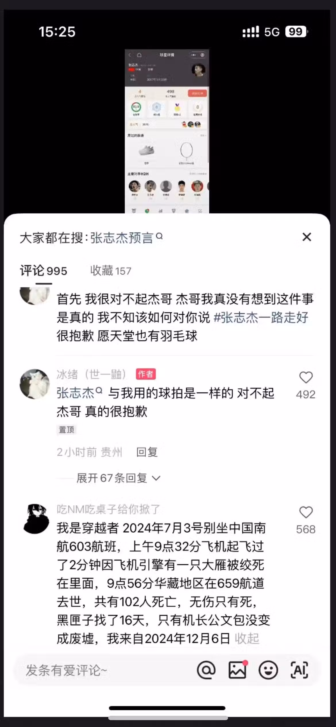 8天前預言17歲羽球小將死亡悲劇!PO「我是穿越者…」全網超毛