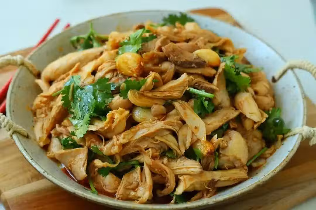 製作配料:雞腿3隻 蔥姜蒜香菜洋蔥適量 花椒八角適量 生抽3勺 蚝油2勺 鹽1勺 陳醋1勺 辣椒粉1勺 白糖半勺 白芝麻1勺