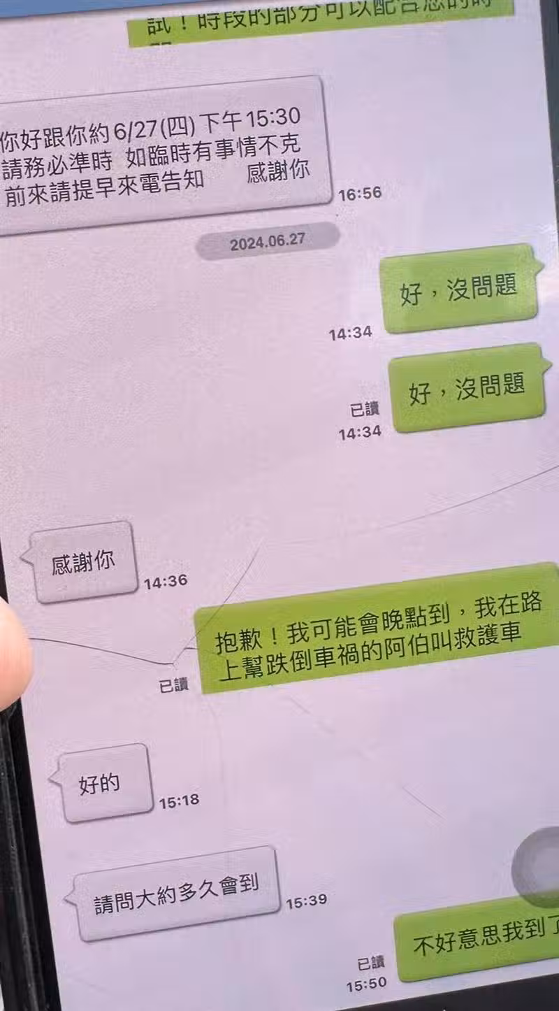 騎車去面試!彰師大正妹「為救人遲到半小時」 「下午收到公司通知」愣住了