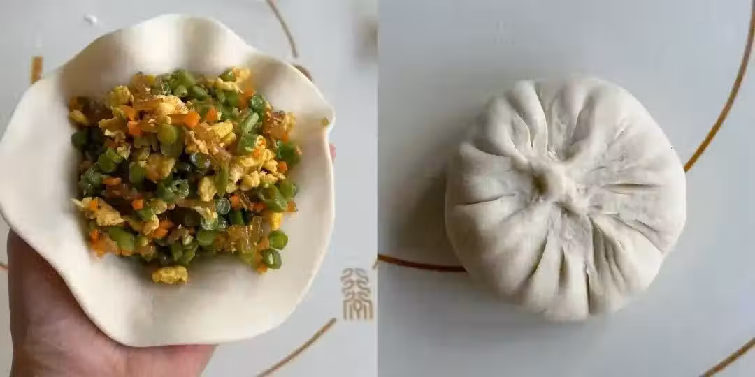 6、將包好的餡餅輕輕按壓成扁平狀,力度要適中,既能稍微看見內部誘人的餡料色彩,又能保持餅皮的完整性。這樣的外形不僅美觀,還便於後續的煎制。