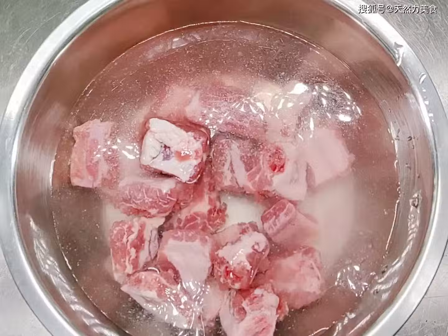 2、抓洗好後我們再用清水多衝洗幾遍,要把清洗用的鹽份和小蘇打沖洗乾淨,同時也是把排骨中的血水處理得更乾淨,也可以說清洗這個步驟是排骨好吃的一個關鍵點。
