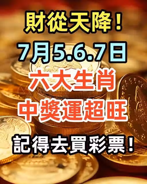 財從天降!7月5.6.7日,中獎運超旺六大生肖,記得去買彩票!