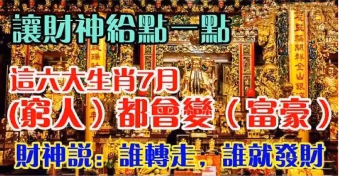 讓財神爺點一點,這六大生肖7月份開始(窮人)都會變成(富豪)