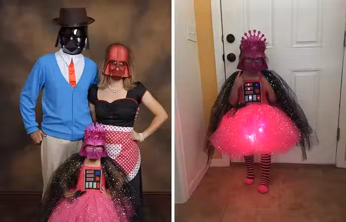 爸媽透露,女兒其實一直以來都對扮裝造型很有自己的想法,3歲的時候她就扮成《星際大戰》里的反派公主,而且還要求爸爸媽媽也要一起扮XD而去年的萬聖節她則是扮成坐在魔毯上的漂浮精靈!這個小女孩真的很有自己的想法~以後可以朝設計師之路邁進啊XD